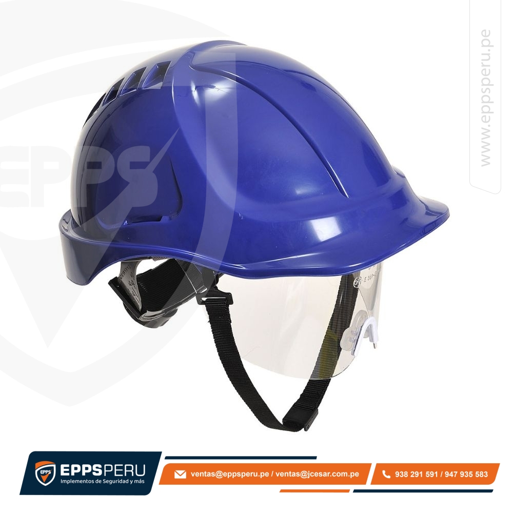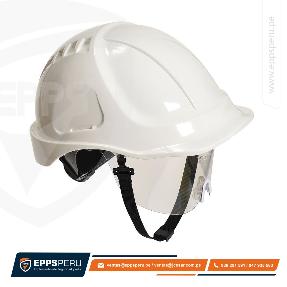 Casco ABS, cómodo arnés textil de 6 puntos, ajuste por ruleta, ajustable 56-63cm. Banda para sudor y barboquejo incluidos. Vendido con el visor retráctil incoloro PW56 incluido.