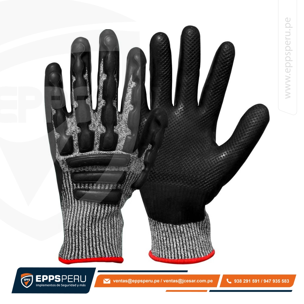 • Guante Hecho de fibra HDPE 13 Gauge con palma de látex y protección contra impactos.