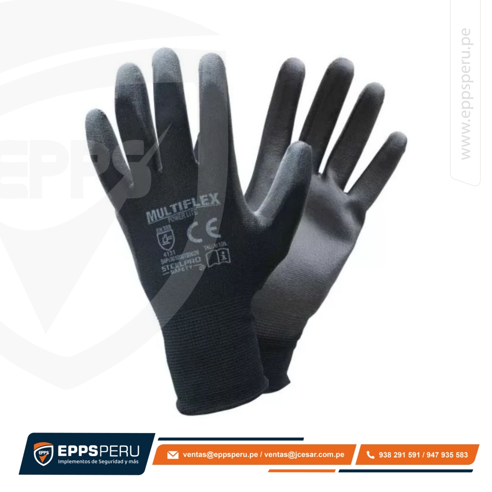 • Guante Poliéster Palma PU, que otorga respetabilidad, ductilidad, gran ergonomía permitiendo un excelente nivel de agarre, destreza y comodidad.