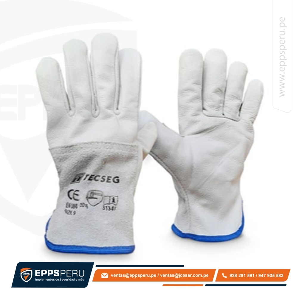 Guante modelo conductor y/o operador para uso general, de material 85% cuero blanco y 15% carnaza en el dorso, con ribete. Buena resistencia al desgarro y a perforación, es ideal para manipulación maquinaria y obras de construcción.
