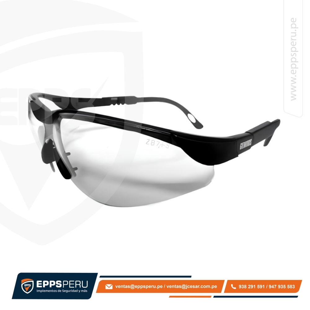 Lente de policarbonato con tratamiento antirayadura y antiempañante.