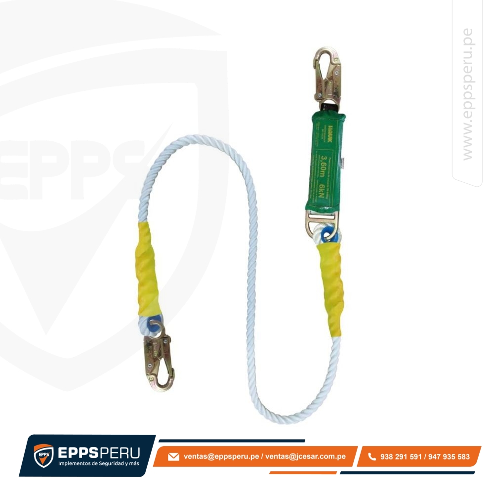 Línea de Vida/Conexión de 1,80 m, de Cabo Torcido de 5/8″, con Amortiguador de Caída, con Dos Ganchos de 3/4″ DC1PF2 Hauk