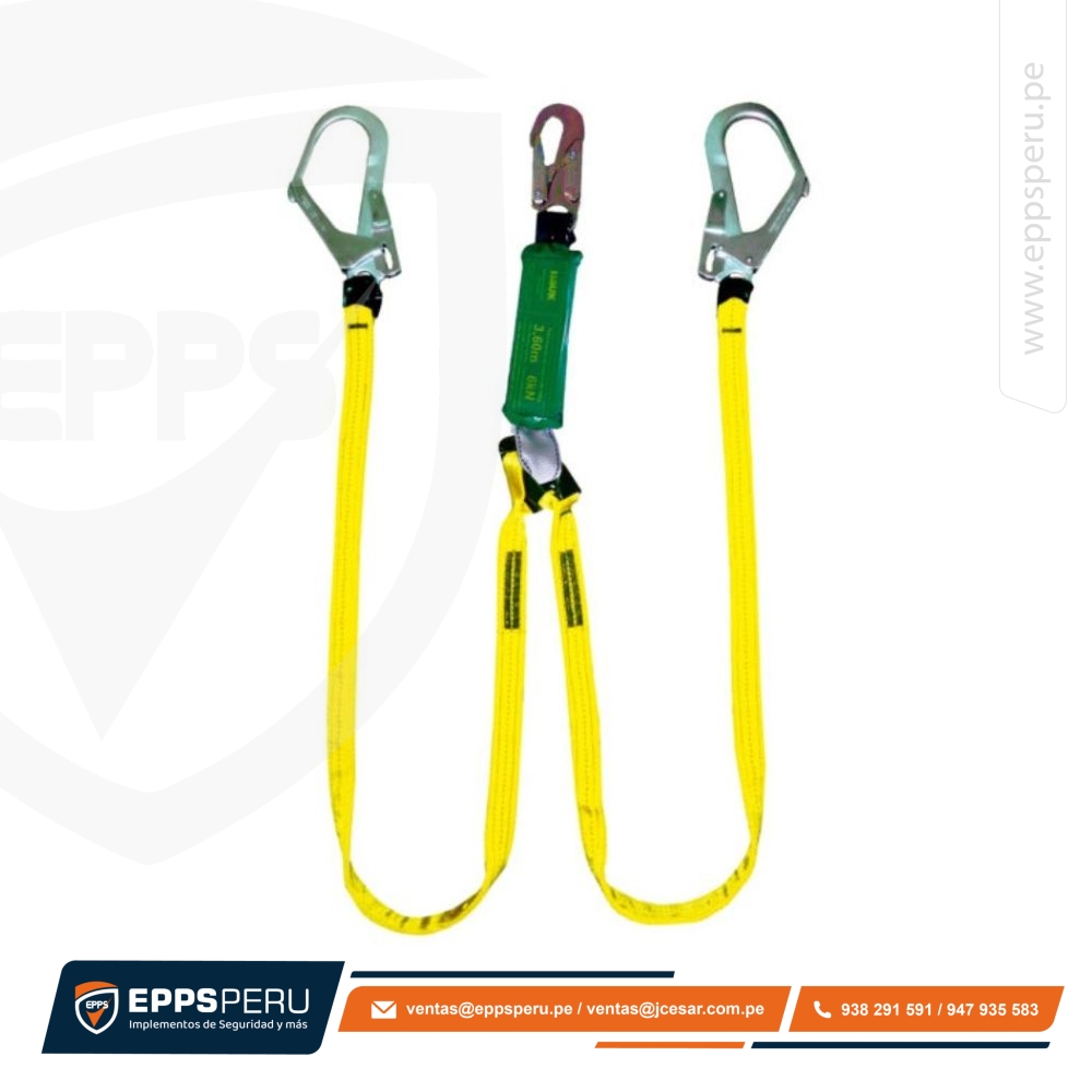 - Línea de vida / conexión doble, con amortiguador de caída factor 2.