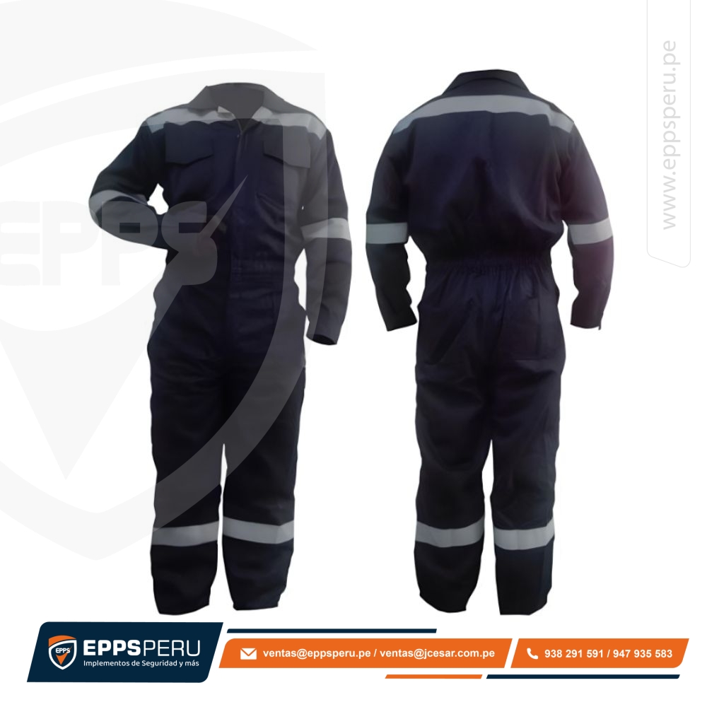 Mameluco manga larga en tela drill Tecnologia de composición 30% de algodón, 70% polyester con cuello neru, bolsillos en el pecho parte inferior dos bolsillos ojal, parte trasera dos bolsillos parche, pretina elasticado en la parte de atrás, cierre doble llave de seguridad en forma ojal, puños con botón de seguridad, con cinta reflectiva Coreana de 2? logotipo bordado en el pecho y espalda. Tallas: S, M, L, XL