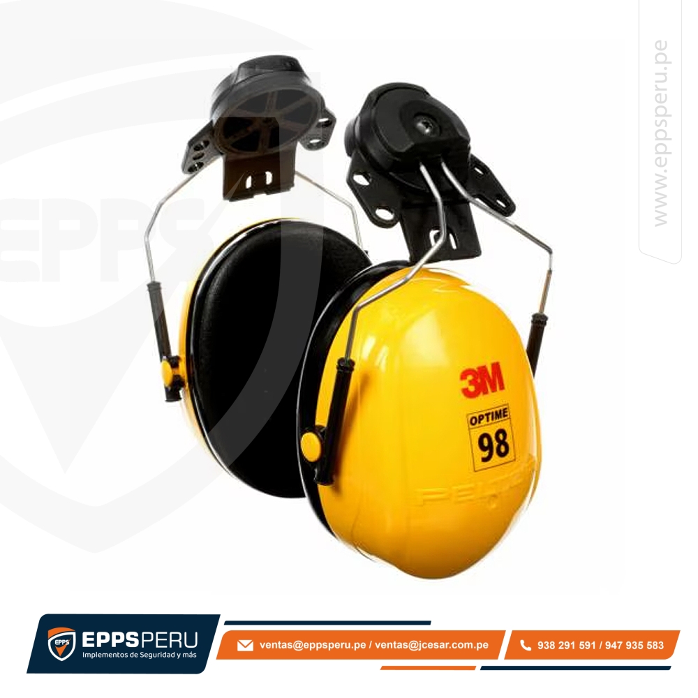 3M Peltor Optime 98 orejeras sobre casco con sujeción de montaje universal que se adapta a la mayoría de los cascos.