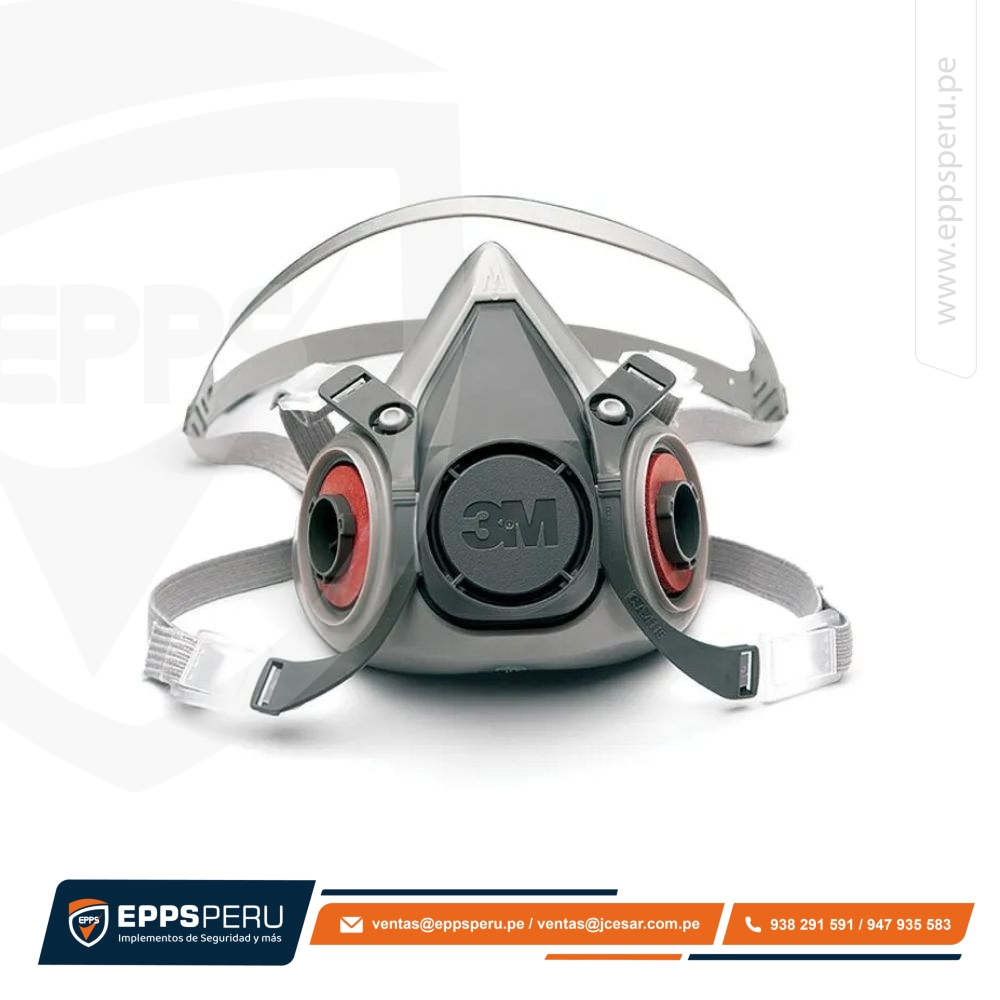 Respirador 6200 3M, pieza facial de media cara doble cartucho, ofrece la posibilidad de usar filtros y cartuchos reemplazables para protección contra ciertos gases, vapores y material particulado como polvo, neblina y humos.